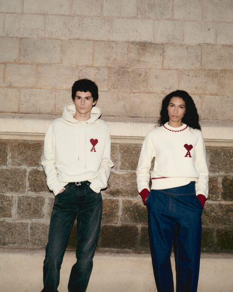 The Valentines’ Day selection of pieces offers a curated reinterpretation of the iconic Ami de Coeur line. The red embroidered symbol contrasts with off white pieces: wool sweaters and cardigans as well as cotton sweaters, hoodies and t-shirts.