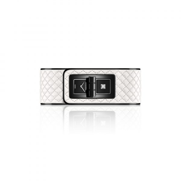 Inspired by the tokens of a game of dominoes, the Code Coco contrasts the white of its quilted leather bracelet with the black of its two dials and its Mademoiselle clasp. Adorned with a princess-cut diamond, the CODE COCO GAME expresses the essence of the House’s iconic codes.