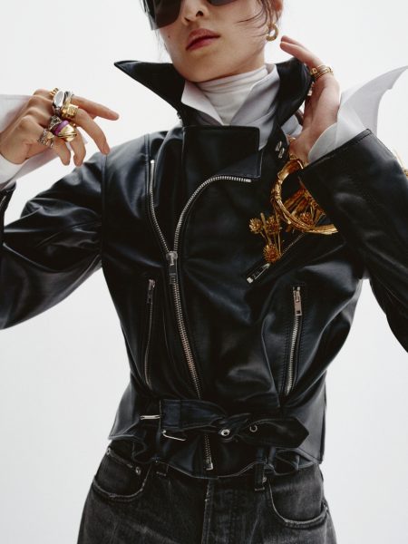 Bringing an extra dose of vibrant colour with bold reds and greens splashed across the runway, Rider also placed strong emphasis on accessories. Models were layered with oversized gold charms, standout embellishments, and dramatic costume jewellery. Belts were finished with striking oversized hardware, proudly showcasing the brand’s logo. He also debuted statement footwear, including a pair of cowboy boots in patchwork python leather and pointed shoes adorned with bows.