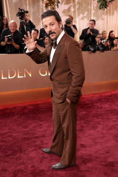 Golden Globe Award nominee Diego Luna, nominated for Best Actor in a Drama TV Series (Andor) wore a ZEGNA 2026 Red Carpet Collection brown wool mohair tuxedo, off white tuxedo shirt, and a brown silk bow-tie, with dark brown leather moccasin loafers.